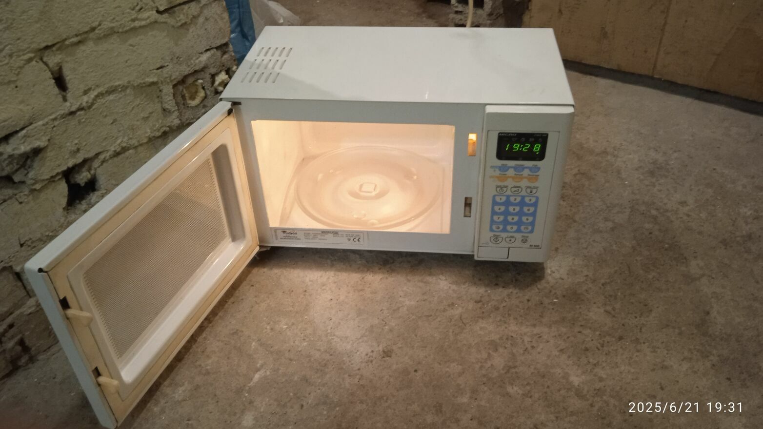 Sprzedam kuchenke mikrofalowa w stanie bardzo dobrym Whirlpool wyświetlacz godziny zegara wymiary szer46cm wys29cm głe27cmMożliwość podwozu